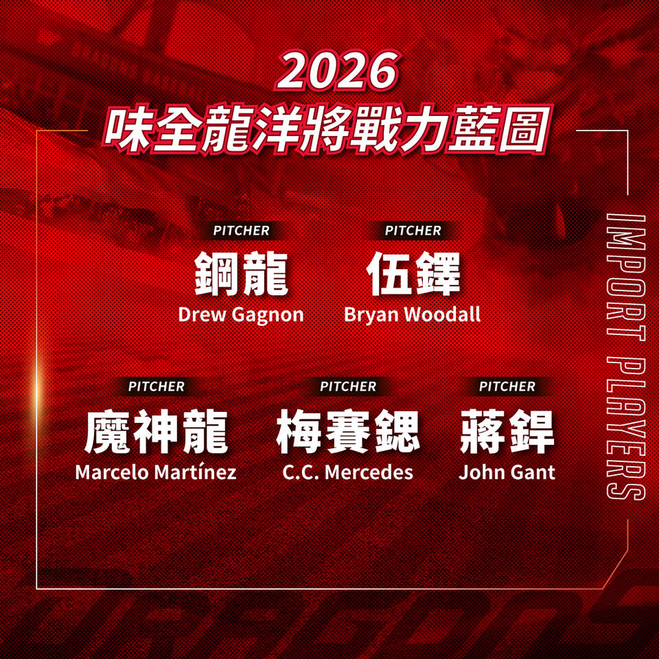 ▲ 味全龍公布2026洋將名單 。(圖/味全提供)