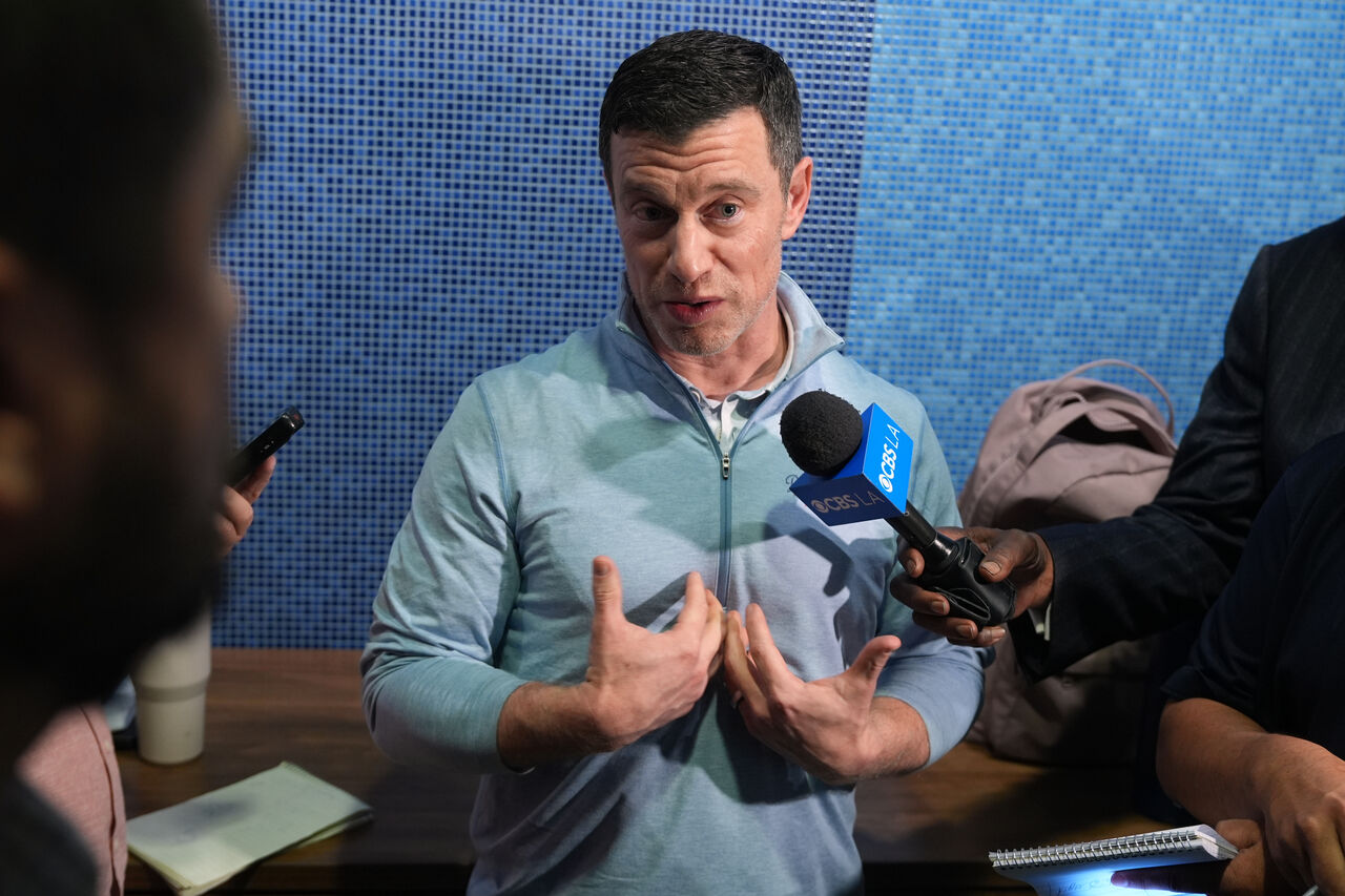 ▲ 道奇棒球事務總裁佛里德曼(Andrew Friedman)出席記者會,親自宣布球隊簽下外野手塔克(Kyle Tucker),為新賽季豪華戰力揭開序幕 。(圖/達志影像/美聯社)