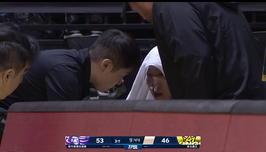 ▲新北國王簡祐哲遭新竹攻城獅高國豪肘擊到鼻樑,洪志善曝他鼻樑斷了。(圖/翻攝自YouTube/TPBL)