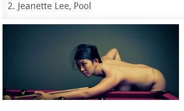 網路上最近流傳一張韓裔美籍撞球選手、綽號「黑寡婦」的珍娜李全裸打球的照片,來台參加安麗杯撞球賽的她大方承認就是她本人。她透露拍照時懷孕5個月,因為是知名運動頻道推出的專題,加上攝影團隊很專業,她才同意拍攝。