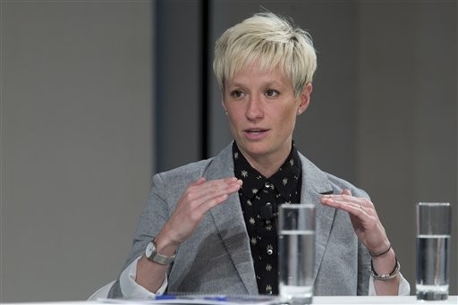 美國職業運動抵制國歌事件,延燒到國際賽場上,美國女足國家隊中場瑞比露(Megan Rapinoe)在與泰國的友誼賽前,國歌演奏時單腳跪地表達抗議。
