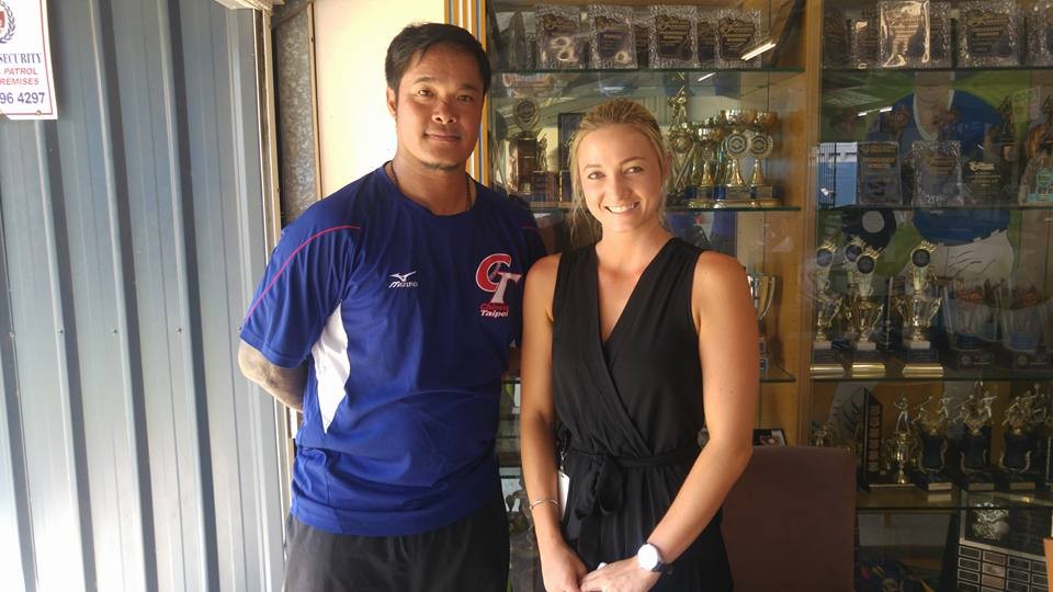 澳洲黃金海岸當地的雜誌採訪瑞絲朋(Jenna Rathbone)到現場採訪總教練郭泰源、體能教練江奕昌與隊長林智勝。
