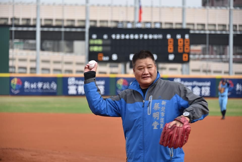 ▲新北市三重棒球場啟用,新北市議員蔡明堂開球。(圖/新北棒委會提供)