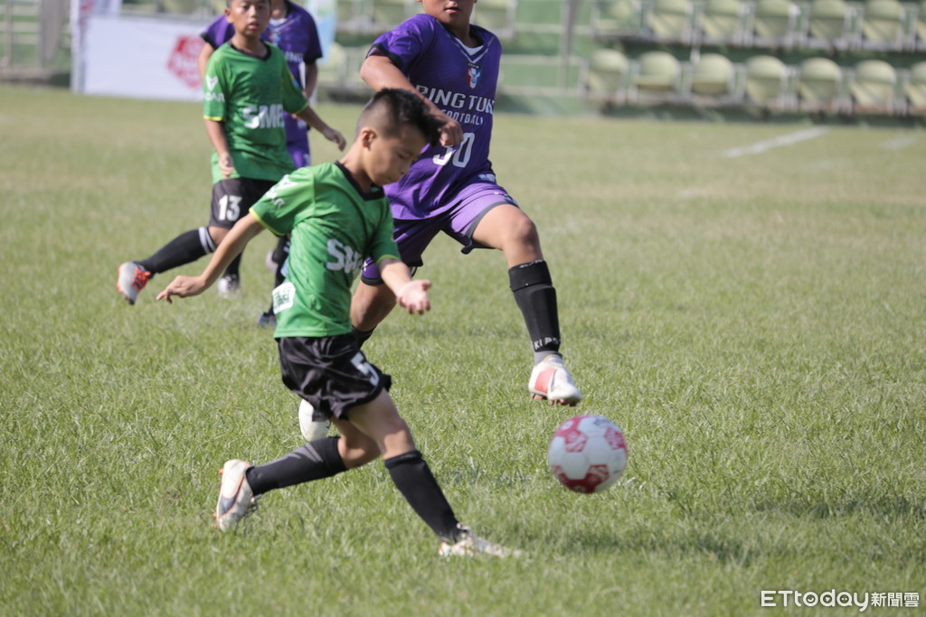 ▲小球員們在場上賣力搶球。(圖/記者張克銘攝)