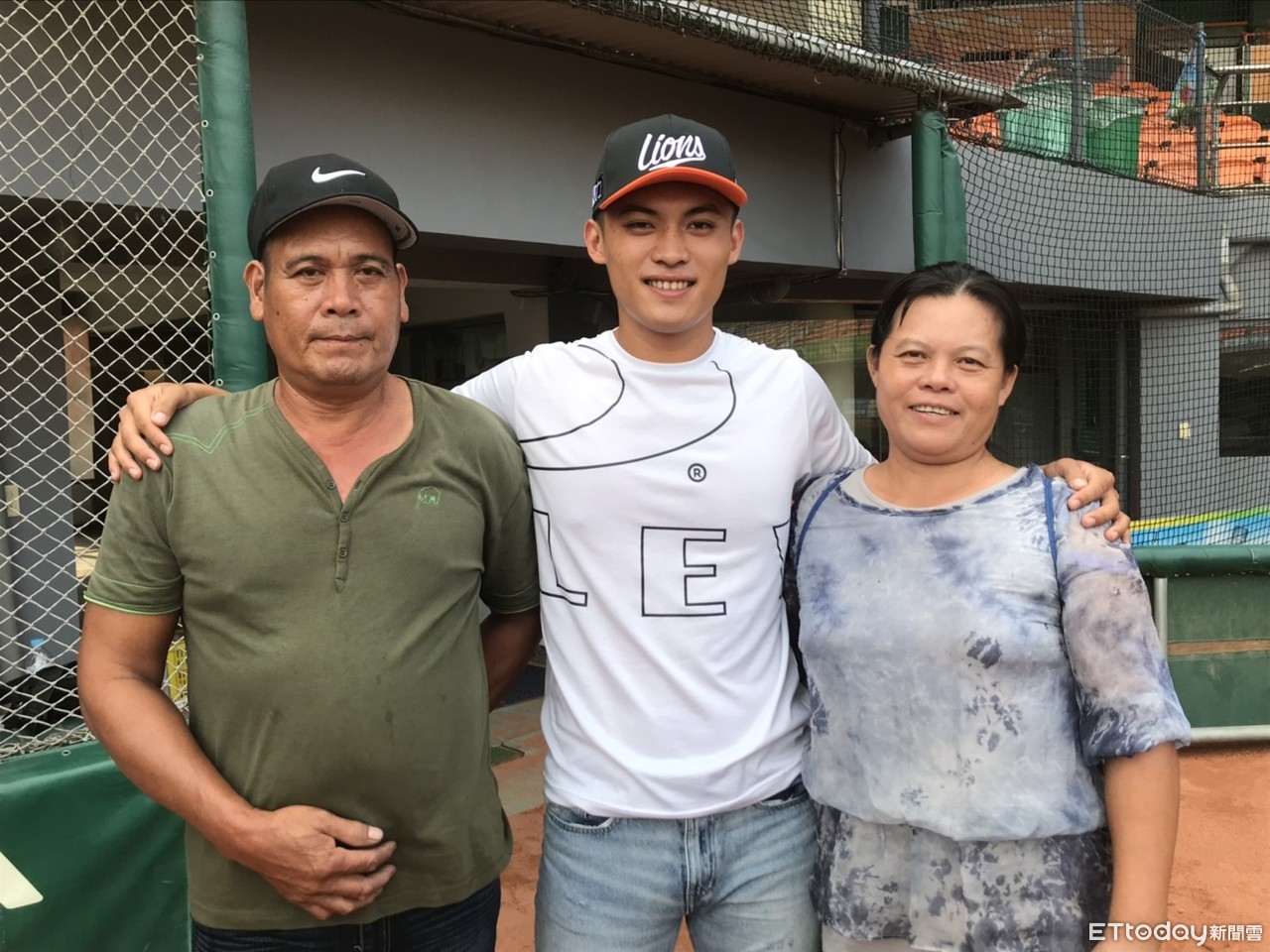 統一獅第9輪新秀投手李慶隆,8日在父母陪同下,向統一獅報到,期待趕快進職棒出賽。