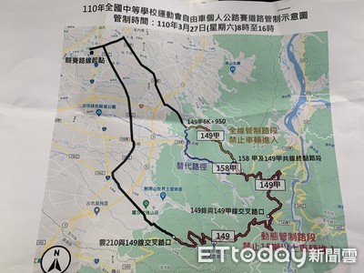 110年全國中等學校運動會「自由車個人公路賽」於本週末3月27日登場,參賽人數有565人,雲林縣縣道149線、149中線道路部分路段,自27日上午8時至下午4時管制,另包括701...