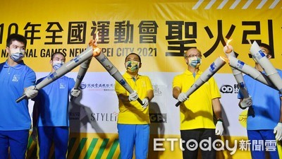 110年全國運動會聖火隊於17日晚間從新北市最美麗的地標「野柳女王頭」出發!取火儀式先以雷射光束,絢麗地射向取火台引燃聖火,由市長侯市長、教育部次長林騰蛟一起從母...