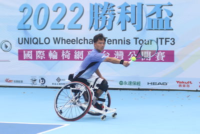 「2022勝利盃國際輪椅網球台灣公開賽」19日在高雄市橋頭竹林網球場進行最後一天終極大戰,前世界第7、日本「大魔王」真田卓再度展現超強的實力以兩個6比0解決了台灣輪網...