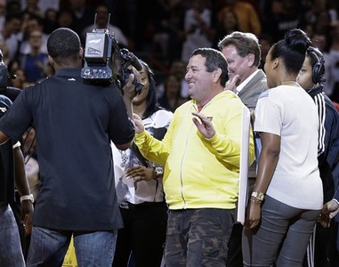 26日熱火隊在主場比賽的中場休息時間,一名叫做德萊許(Michael Drysch)的中年阿伯利用勾射技巧,成功從半場將球送進籃框,獲得鉅額獎金以及「小皇帝」詹姆斯(LeBron Jam...