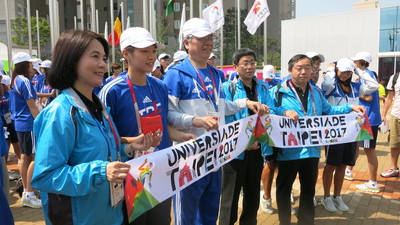 光州世大運中華台北代表隊今(2)日上午舉行選手村入村升旗儀式,台北市副市長周麗芳、大專體育 總會會長江漢聲、駐韓國臺北代表部釜山辦事處處長唐殿文共同出席,周副市...