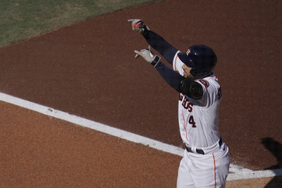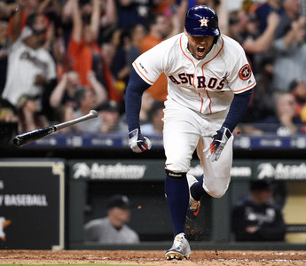 太空人美聯冠軍賽G5背水一戰,史普林格(George Springer)首局首打席首球全壘打,大聯盟歷史第10次,史普林格生涯第19發季後賽全壘打,歷史第4多。