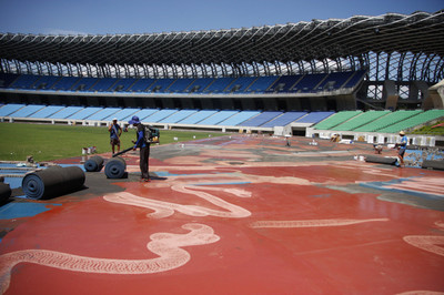 為因應10月即將於高雄舉行的104年全國運動會,高雄市政府與體育署挹注經費4,471萬元整修高雄國家體育場(世運主場館)田徑場跑道,副市長吳宏謀、教育局局長范巽綠今(2...