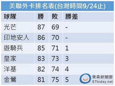 大聯盟賽季已進入爭奪季後賽資格的關鍵時刻,國聯中區及美聯外卡戰況激烈,為讓球迷每天清楚掌握最新戰況,每天於大聯盟賽事結束後,將會整理國聯中區、國聯外卡及美聯...