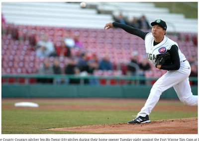 小熊隊1A康郡美洲獅隊(Kane County Cougars)台灣右投曾仁和,16日進行他在小聯盟第二次先發,面對光芒隊1A鮑靈格林熱棍(Bowling Green Hot Rods)主投5.1局就送出6次三振...