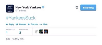 地鐵大戰這四天打得火熱,兩隊的社群網站總能看到雙方球迷互罵,只是15日卻出現罕見的情形,洋基的官方推特在美國時間當日凌晨出現「YankeesSuck(洋基遜斃)」的貼文,自...