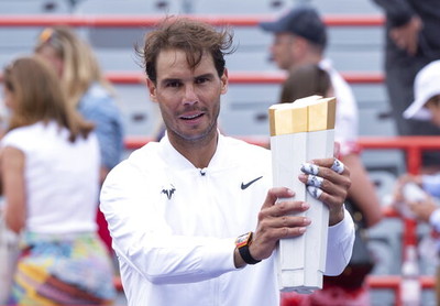 在羅傑斯盃4強賽因「跳跳虎」孟菲爾斯(Gael Monfils)退賽而拿下大師賽第380場勝利的納達爾(Rafael Nadal),於今冠軍戰以6比3、6比0輕鬆擊敗俄羅斯選手梅德韋傑夫(Daniil...