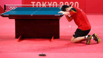 東奧桌球男單銅牌戰,我國桌球小將「小林同學」林昀儒對上德國老將奧恰洛夫(Dimitrij Ovtcharov),兩人鏖戰7局,最終奧恰洛夫以4比3擊敗林昀儒奪下銅牌,賽後掩面跪地...
