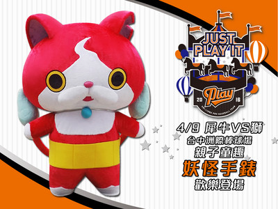 下周五起連續三天(4月8日至10日)統一獅在台中洲際棒球場推出「JUST PLAY IT 童趣親子」主題活動,4月9日週六特別邀請重量級孩子天王妖怪手錶吉胖喵蒞臨台中洲際棒球場,...