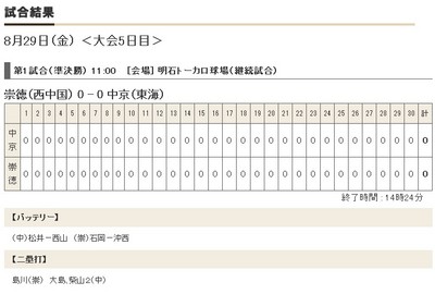 耗時4天的日本全國高中軟式棒球選手權大賽終於有結果,歧阜中京與廣島崇德兩隊打了50局,31日中京才在50局上靠2支安打與1次保送拿下3分,最後就以3比0獲勝,先發投手松...