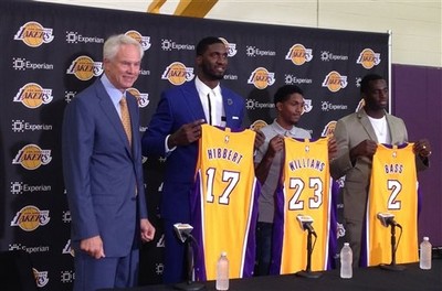 湖人23日為3位新加入的球員貝斯(Brandon Bass)、威廉斯(Louis Williams)和希伯特(Roy Hibbert)舉行加盟記者會,卻出現了一段「插曲」,3位「新同學」被現場記者問到,球...