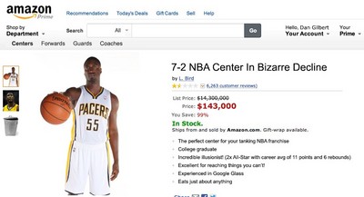 印第安納溜馬隊雖然在23日於季後賽第二戰扳回一城,但球隊中鋒希伯特(Roy Hibbert)近來的糟糕表現,卻已經讓部分球迷對他感到不滿,甚至惡搞將他放上知名拍賣網站上「網...
