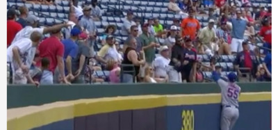 任何物品都是球迷接球的最佳武器,勇士與大都會之戰,勇士佛利曼(Freddie Freeman)敲出本季第13轟,勇士球迷就用帽子搶在大都會外野手接到這球。