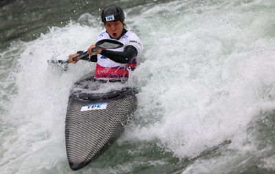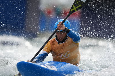 輕艇極限激流越野賽首度在巴黎奧運亮相,男子好手吳少璿復活賽划出第2名晉級預賽,嗨比Rock手勢直呼:「開心」,新興項目多了碰撞,但他有輕艇水球經驗適應更快。