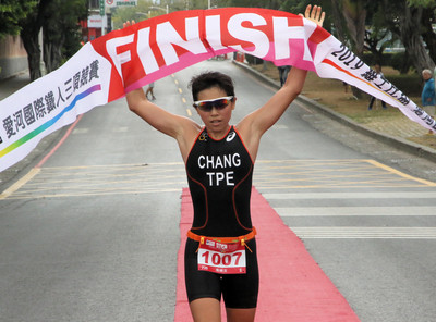2019第十三屆維士比盃愛河國際鐵人三項3日清晨6時30分在愛河中都橋與五福橋間熱鬧舉行,66歲熱愛運動的黃英俊代表選手宣誓,高雄市副市長洪東煒、立委許智傑、運動發展...