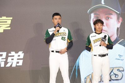 大專棒球聯賽即將開打,台鋼雄鷹隊球員葉保弟與施子謙19日出席開賽記者會,以過來人身份鼓勵大專球員把握表現機會。兩人分享自身求學與比賽經驗,勉勵學弟們在逆境中成長。