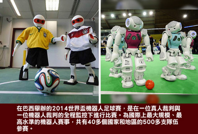 在巴西舉辦的2014世界盃機器人足球賽,是國際上最大規模、最高水準的機器人賽事,共有40多個國家和地區的500多支隊伍參賽。而台灣7所學校的8名中學生,也組了兩支隊伍參...