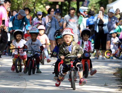 2019捷安特嘉年華21日登場,由Push Bike兒童滑步車賽超級大亂鬥氣氛揭開序幕,雅加達-巨港亞運銀牌「阿丹」江勝山的姪兒江胤和也來尬車,雙胞胎林品旭/林品昇吸睛,兄...