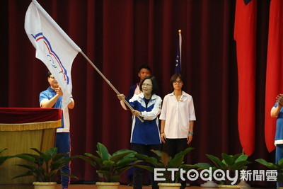 2018年雅加達─巨港亞運倒數8天,10日在高雄國訓中心舉行中華代表團授旗典禮,由總統蔡英文親自授旗,並頒發加菜金,由羽球女單世界排名第一的戴資穎代表接受,585名國手...