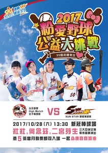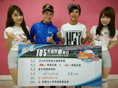 Sun Star明星棒球隊今年與中華職棒聯盟在12月23日下午1點30分於斗六棒球場進行明星公益棒球賽,今年中職隊多了高志綱、許銘傑、鄭乃文、曾豪駒、蕭任汶等5位OB球星參戰...