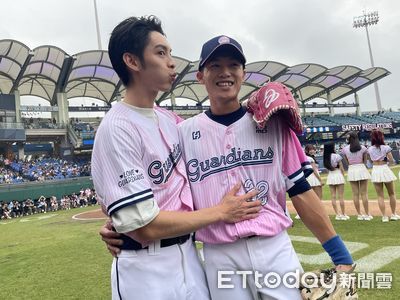 富邦悍將13日舉辦「心動時刻」主題週,邀請李宗賢的好友曹佑寧來開球,兩人從國小就是隊友,即使各自為演藝及棒球生涯忙碌不常相聚,一見面還是可以「公然放閃」。