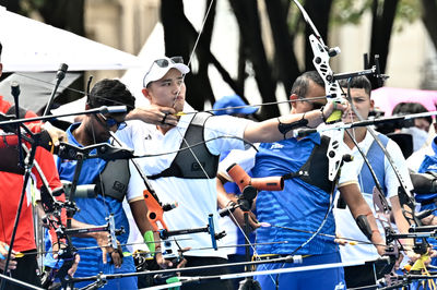 巴黎奧運台灣射箭男團於8強賽以1比5不敵中國男團,遺憾止步8強,兩位首次踏上五環殿堂的射箭好手戴宇軒、林子翔並不氣餒,會把目標放在接下來的個人賽,持續調整力拚佳績。