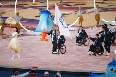2023杭州亞洲帕拉林運動會於今(22)晚正式舉行開幕典禮,並由輪椅籃球隊隊長呂駿逸以及資深健力女將林資惠共同擔任掌旗官,連兩屆亞帕運都擔任掌旗官的林資惠直言,「很...