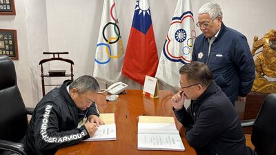 中華奧林匹克委員會第13、14屆主席交接典禮,今(30日)於台北新板希爾頓酒店舉行。卸任主席林鴻道在榮譽主席蔡辰威監交下,將象徵責任的印信正式交給新任主席蔡家福,...