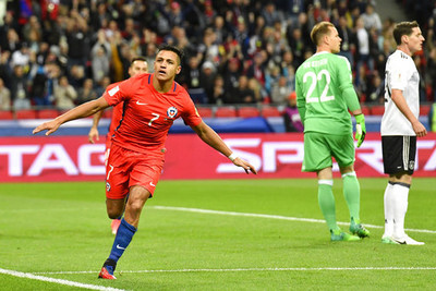 智利前鋒桑切斯(Alexis Sanchez),聯合會盃面對德國的比賽剛開賽就取得進球,雖然最後沒有帶走勝利,不過仍幫助智利1:1踢平德國,這是桑切斯在智利國家隊的第38個進球,...