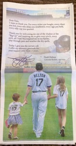 今年球季除了洋基隊李維拉(Mariano Rivera)為退休球員最大咖外,洛磯隊「山神」海爾頓(Todd Helton)的退休,也最令全美球迷覺得可惜,懂得惜福的他,例行賽結束之際在《...