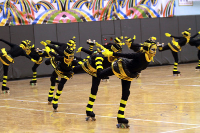2013世界花式溜冰錦標賽,15日進入最後1天賽程,我國大型團體花式項目(大秀)派出台南市隊,搭配音樂《大黃蜂的飛行》上演「淘氣蜜蜂」戲碼,團隊第1次比賽就登上國際賽...
