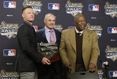 象徵聯盟最佳打者的漢克阿倫獎(Hank Aaron Award),今年由兩位年輕強打洛城天使隊的楚特(Mike Trout)以及馬林魚隊的史丹頓(Giancarlo Stanton)拿下此殊榮,前2年都獲此...