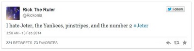 洋基隊長基特(Derek Jeter)12日宣布2014年球季後退休,美國棒球界無不為此感到嘆息,不過他的情史仍難逃被重提,ESPN的節目「運動國度(SportsNation)」特地做了一張先發...