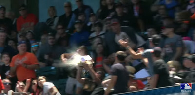 舊金山巨人主場10日凌晨,碰上響尾蛇的賽事,有球迷為了搶接高施密特(Paul Goldschmidt)打出的界外球,竟然突發奇想將手上的餐盤高高舉起,有趣的是上面還放著滿滿食...