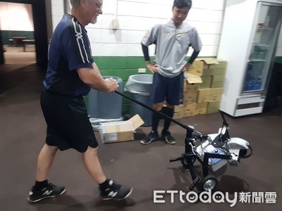 中信兄弟在上半季戰績居第一,為讓打擊火力可以更好,今天(3日)再補進新的利器,一台可以帶著走,著球隊移動的投球發球機,打擊教練泰銳(Terry Alexander)開心的把它...