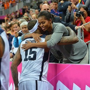 美國第一夫人蜜雪兒(Michelle Obama)29日親臨夢十隊比賽現場,並在賽後給予美國隊成員鼓勵擁抱。不過老公歐巴馬(Barack Obama)是公牛死忠球迷,納第一夫人又最支持哪支...