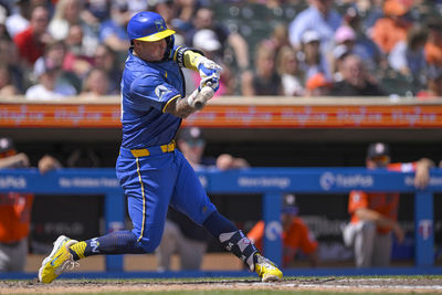 雙城三壘手米蘭達(Jose Miranda)今天(7日)首局就遭觸身球,但他仍然堅持打完比賽,並追平大聯盟連12打數敲安紀錄,雙城本場也以9比3戰勝太空人。