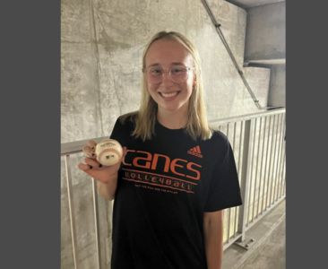 洛杉磯道奇日籍球星大谷翔平18日對邁阿密馬林魚隊之戰,扛出2分砲,本季第48轟出爐。接到這顆球的是坐在右外野二樓看台的19歲大二學生珍娜·范德比森,她與住在邁阿密的...