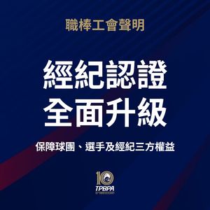 國內職棒經紀認證制度上路已近7年,球員工會累積多年的使用者實際回饋、並參考國外資訊後,制定全新版本的經紀認證制度。盼藉此更加保障球團、選手及經紀公司在業界公平...