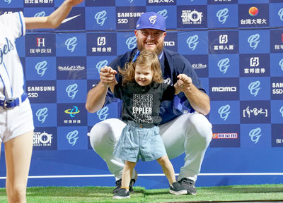 富邦悍將洋投艾普勒28日對決統一獅,省力投球以79球投7.2局贏得來台首勝,賽後MVP頒獎台,帶著女孩一起跳舞初體驗超級圈粉,他笑言,「我女兒比我還紅。」