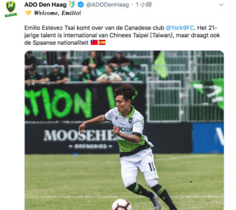 在2019年世界盃亞洲區資格賽對上澳洲袋鼠軍團一戰,台西混血小將蔡立靖(Emilio Estevez Tsai)首度先發上場就表現亮眼,現在更傳來好消息,原先效力加拿大超級聯賽York 9...